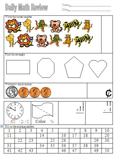 I have created for my students up to 200 worksheets at each level offered. Each level features review in 8-10 different math areas such as counting, addition, subtraction, multiplication and division, money, time, fractions, shapes and measuring.